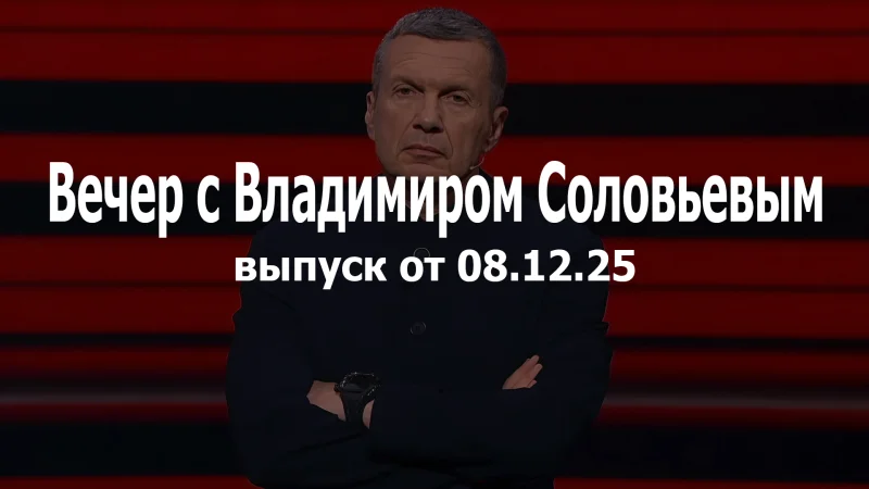 Сегодня последний полный выпуск "Вечер с Владимиром Соловьевым" от (10.12.2025) смотреть онлайн бесплатно. Представляет собой политическое ток-шоу, транслируемое на телеканале "Россия 1". Эта передача выходит исключительно в вечернее время с понедельника по четверг и в воскресенье.
